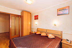 Квартира подойдет для жизнерадостных людей, готовых получать удовольствие от спокойных цветов в интерьере. Здесь традиционный и современный дизайн переплетаются воедино, создавая неповторимую атмосферу гармонии и тепла. В оформлении комнат присутствует смелость и оригинальность. Выбраны цвета выгодно дополнены мебелью из натуральных древесных материалов. Отделка стен выглядит очень своеобразно и эстетично. В спальне минимум мебели, но зато все ее элементы создают комфорт и делают комнату максимально практичной. Из окон открывается шикарный вид на город.